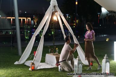 Yazın tadına varabileceğiniz en güzel yer tartışmasız Ege'nin harika kumsallarıdır. Bodrum başta olmak üzere Ege'nin bütün il ve ilçelerinde sizlere hizmet vermekten mutluluk duyuyoruz. Peki hayatınızın en güzel dönüm noktası olan evliliğin teklifini de bu kumsallarda yapsanız nasıl olurdu? Gelin beraber sizler için düşünüp planladığımız çeşitli konseptlerimiz sayesinde sevdiğiniz kadının aklını başından alıp ona unutamayacağı ve hayır diyemeyeceği bir süpriz evlilik teklifi yapalım. Göz alıcı yıldızlar, dalgaların ahengi, kumun sıcaklığı ve siz... Işıklarla süslemiş olduğumuz çadır, romantik şekilde düzenlenmiş bir masa, sevdiğiniz kadın için kocaman bir buket çiçek,uçan balonlar, mumlar, volkan&konfetiler ve şampanyanız eşliğinde dillere destan bir evlilik teklifi için biz her zaman yanınızdayız. Ses sistemi, profesyonel fotoğrafçı, drone, havai fişek, ışıklı yazı levhalarımız ve daha birçok ekipman sizlerin hizmetinde...